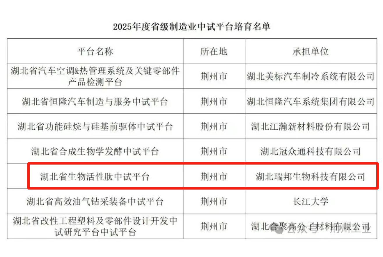 湖北瑞邦生物科技有限公司,成立于2007年12月,位于湖北省荊州開發(fā)區(qū),公司注冊資本1億元,公司占地面積400余畝,目前在崗職工300余人,年產能10000噸,主營生物活性肽系列產品(包括各類動物肽、植物肽)。公司自2005年起開始關注研究生物活性肽生產技術,是國內生物活性肽行業(yè)創(chuàng)始企業(yè)之一,亦是生物活性肽生產企業(yè)的領軍企業(yè);目前公司產能位于全國第一,全世界第三。